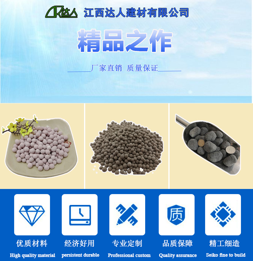 江西達(dá)人建材有限公司所生產(chǎn)的陶粒,按照其用途可以稱為水處理陶粒(陶粒濾料、污水處理廠專用陶粒)是一種新型的生物膜載體濾料,具有質(zhì)輕、比表面積大、吸附能力強(qiáng)等優(yōu)勢,廣泛用于各種形式的濾池濾罐。